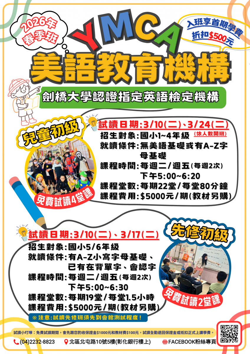 【北屯會館】115年春季兒童美語/先修美語-基礎新班★招生中★
